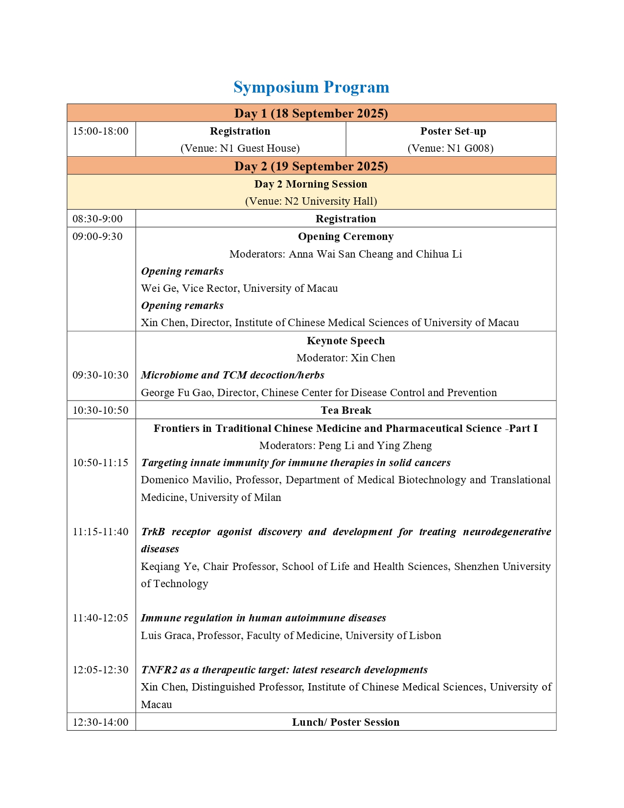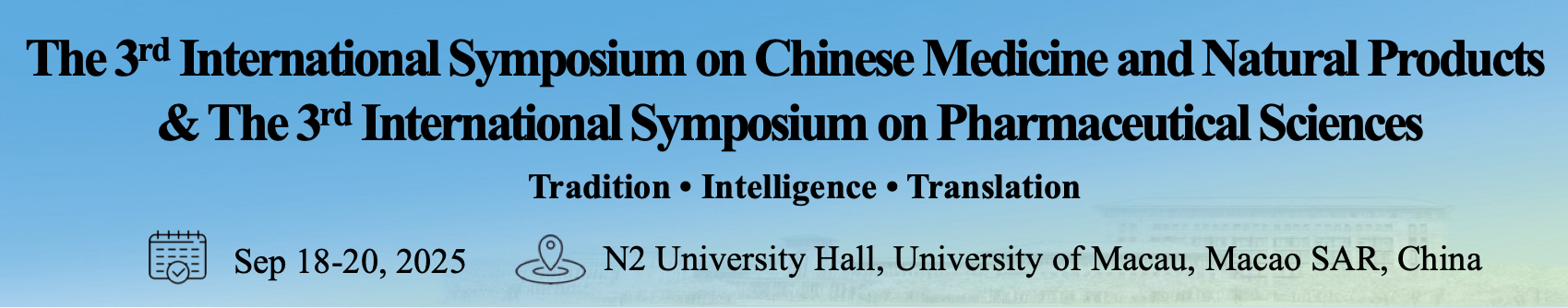 The Institute of Chinese Medical Sciences (ICMS) / State Key Laboratory of Mechanism and Quality of Chinese Medicine (SKL-MQCM) of the University of Macau (UM) is delighted to welcome you to the 3rd International Symposium on Chinese Medicine and Natural Products (ISCMNP) & the 3rd International Symposium on Pharmaceutical Sciences (ISPS), which will be held from 18 to 20 September 2025, at University Hall (N2) and Multi-Function Hall (N1) of UM in Macao SAR, China.