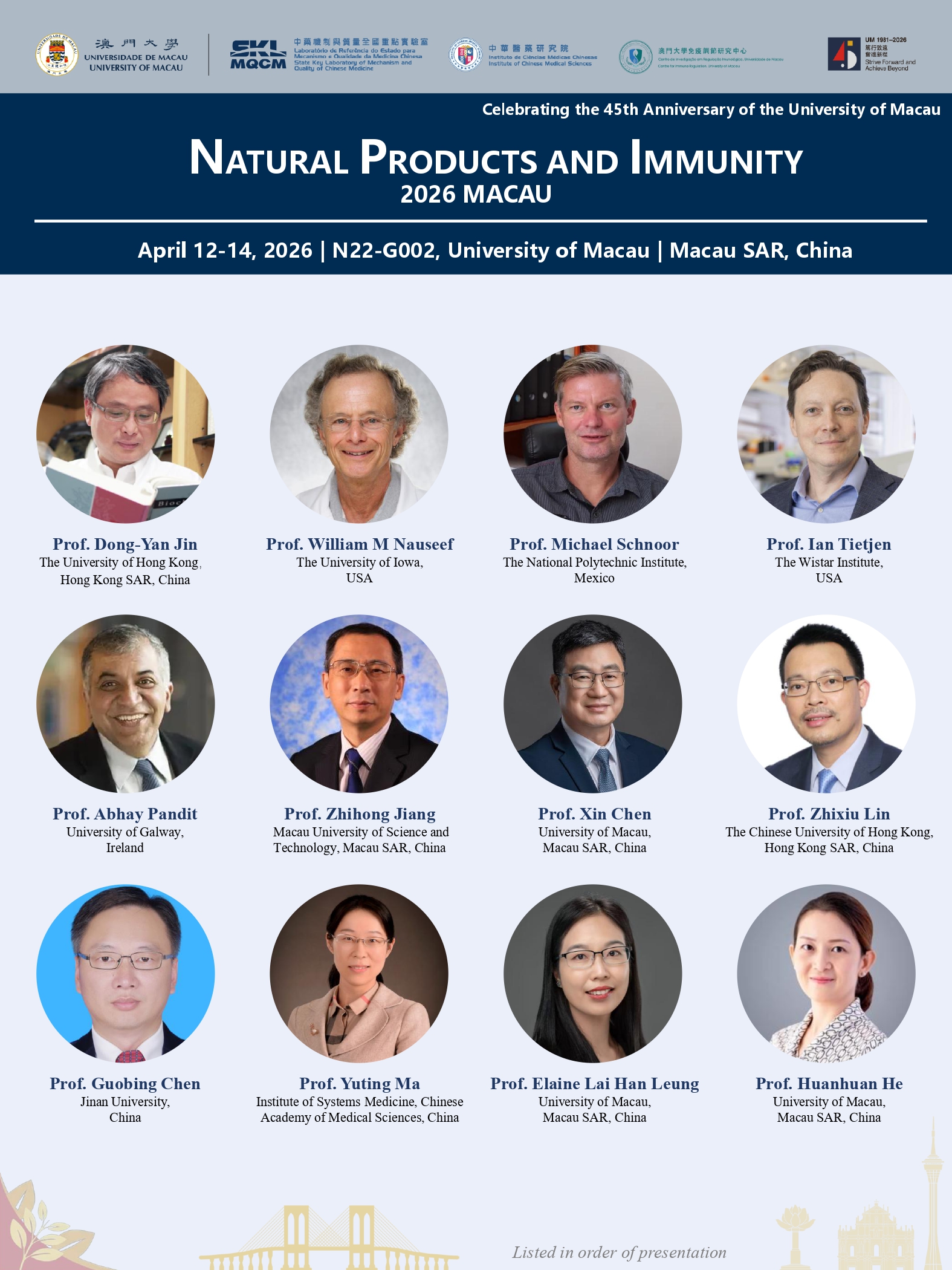 慶祝澳門大學45周年校慶 ── 天然產物與免疫研討會
